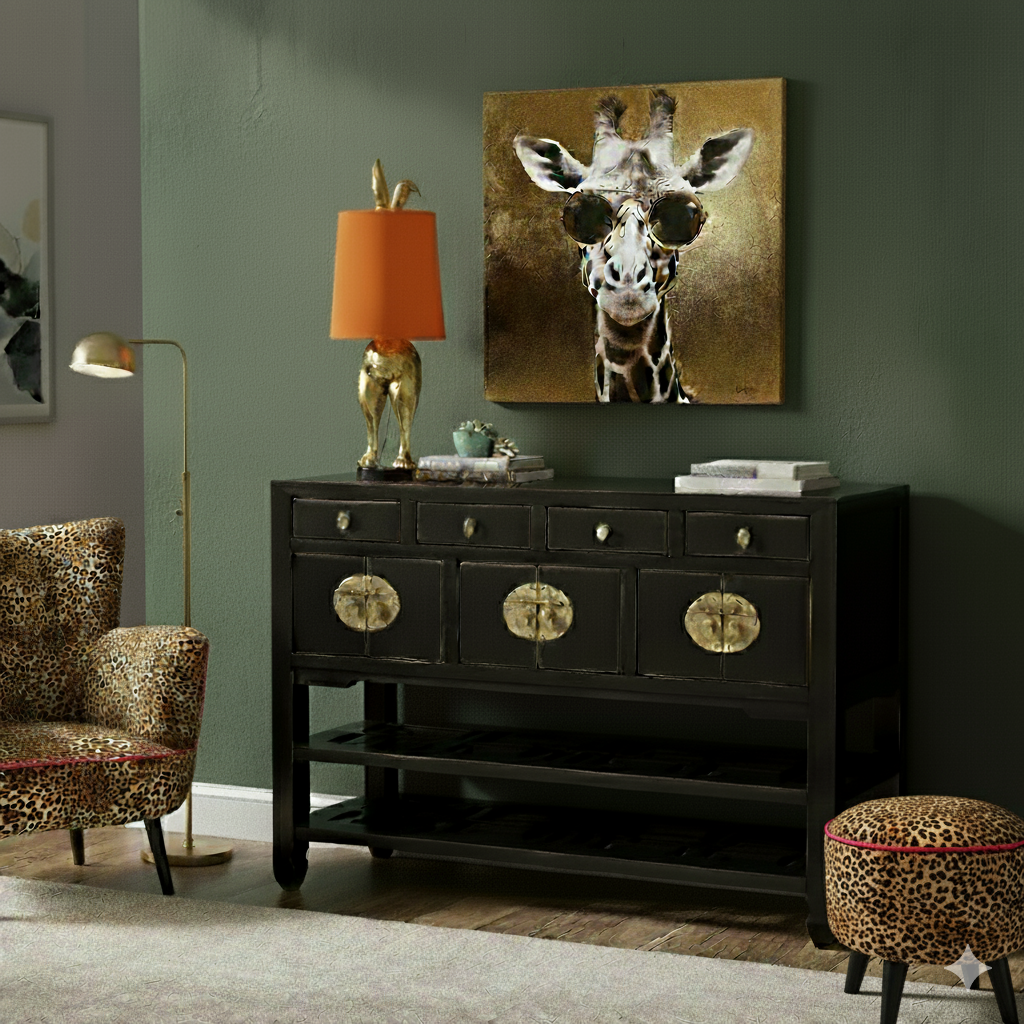 Verleihen Sie Ihrem Wohnraum einen Hauch von Eleganz und Exotik mit unserem beeindruckenden Wandbild "Golden-Giraffe". Dieses handgemalte Kunstwerk, gefertigt aus hochwertigem Acryl auf einer stabilen Leinwand, misst 80x80 cm und ist ein wahrer Blickfang für jedes Zimmer. Die majestätische Giraffe, auf schimmerndem Goldton, strahlt Anmut und Stil aus und zieht alle Blicke auf sich. Die lebendigen Farben und die detailreiche Ausführung machen dieses Bild zu einem einzigartigen Kunstwerk, das sowohl in modernen als auch in klassischen Einrichtungsstilen harmonisch zur Geltung kommt.